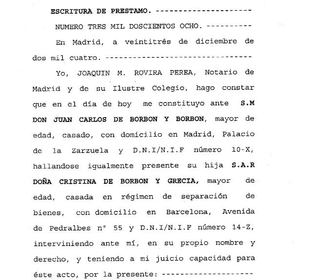 Y hasta tal punto que es curioso que la también célebre escritura de «préstamo» en favor de su hija Cristina de Borbón -texto completo pinchando prestamo_infanta– ni siquiera se menciona el régimen económico matrimonial del rey, lo cual, sea o no jurídicamente correcto o habitual -esta bloguera no tiene ganas de ponerse analizarlo desde el punto de vista de Derecho Notarial- resulta que impide saber algo tan básico como si quien «presta dinero» a la hija es el rey o el rey junto con su esposa. Ni eso sabemos de cierto. Con actividades delictuosas por medio.