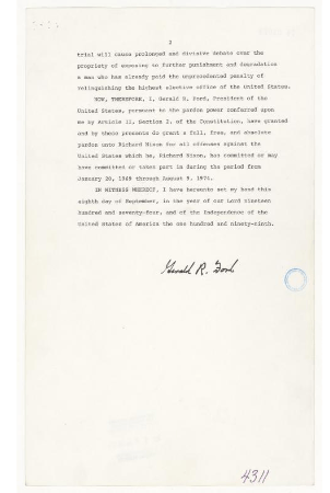 Presidential Proclamation 4311 of September 8, 1974, by President Gerald R. Ford granting a pardon to Richard M. Nixon.