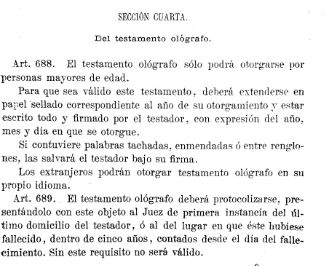 Codigo Civil 1889 testamento ológrafo