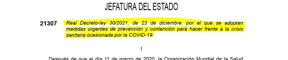 Y también el mismo Real Decreto-ley 30/2021, de 23 de diciembre, por el que se adoptan medidas urgentes de prevención y contención para hacer frente a la crisis sanitaria ocasionada por la COVID-19 que incluye esto: